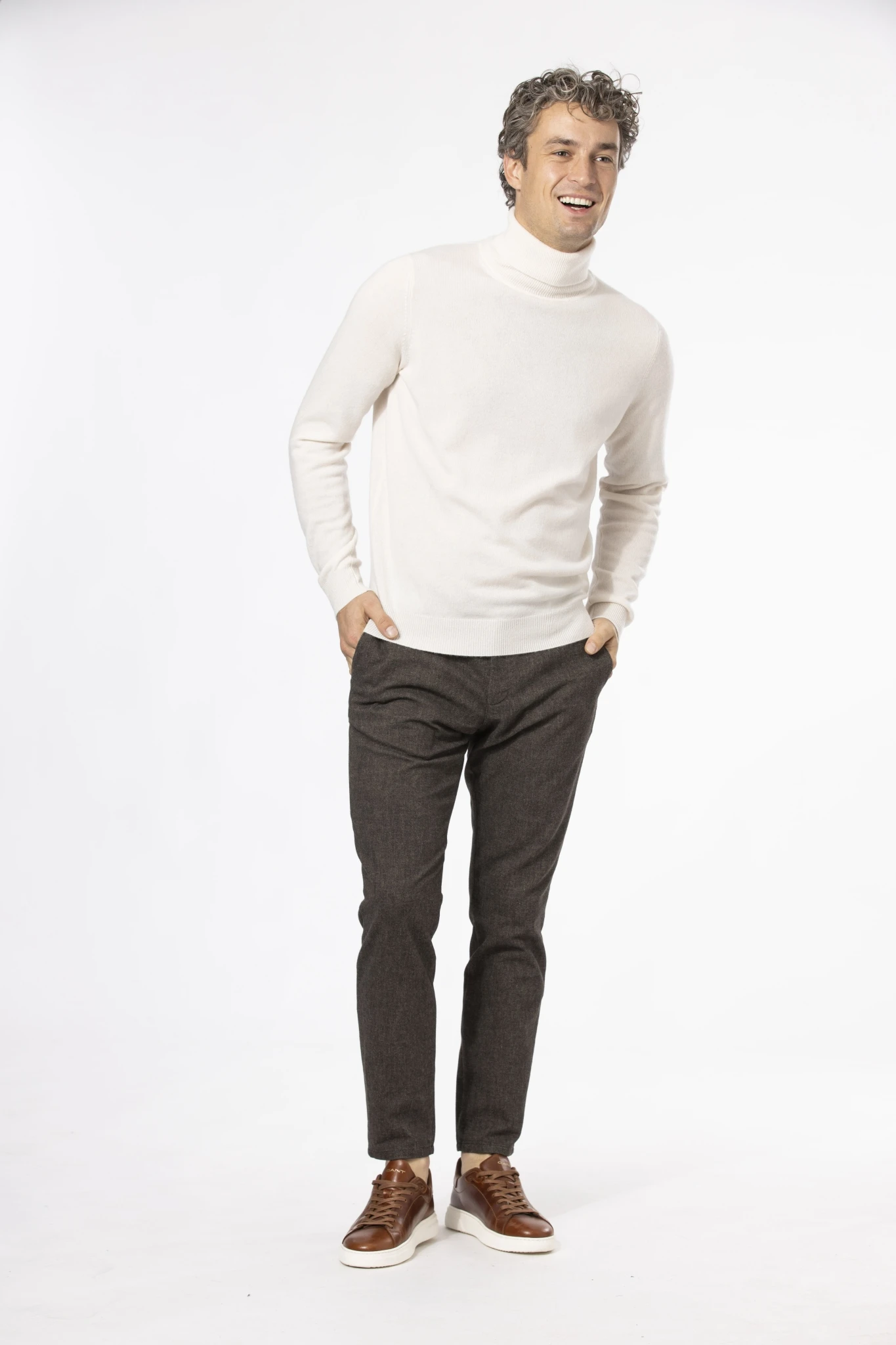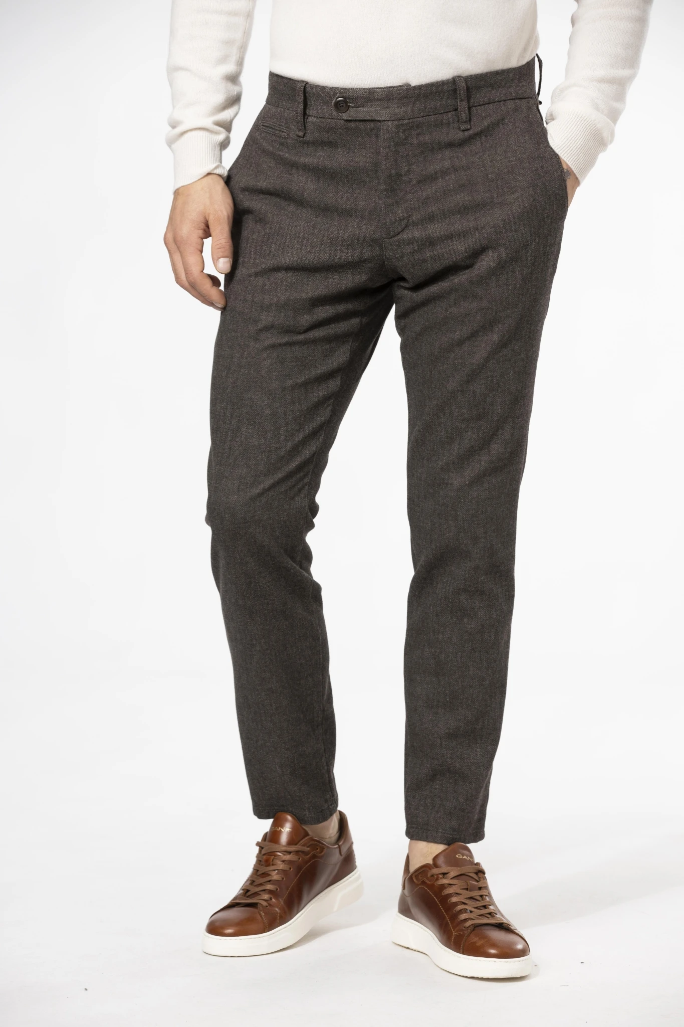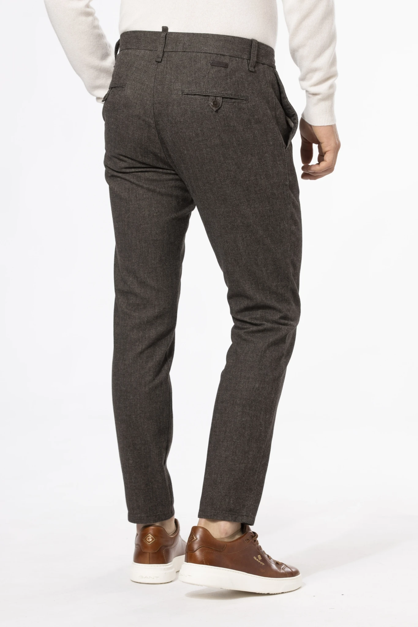 Diese Chinos im Woollook zeichnet sich durch eine authentische Wolloptik aus, hat aber den Tragekomfort einer Baumwollqualität.