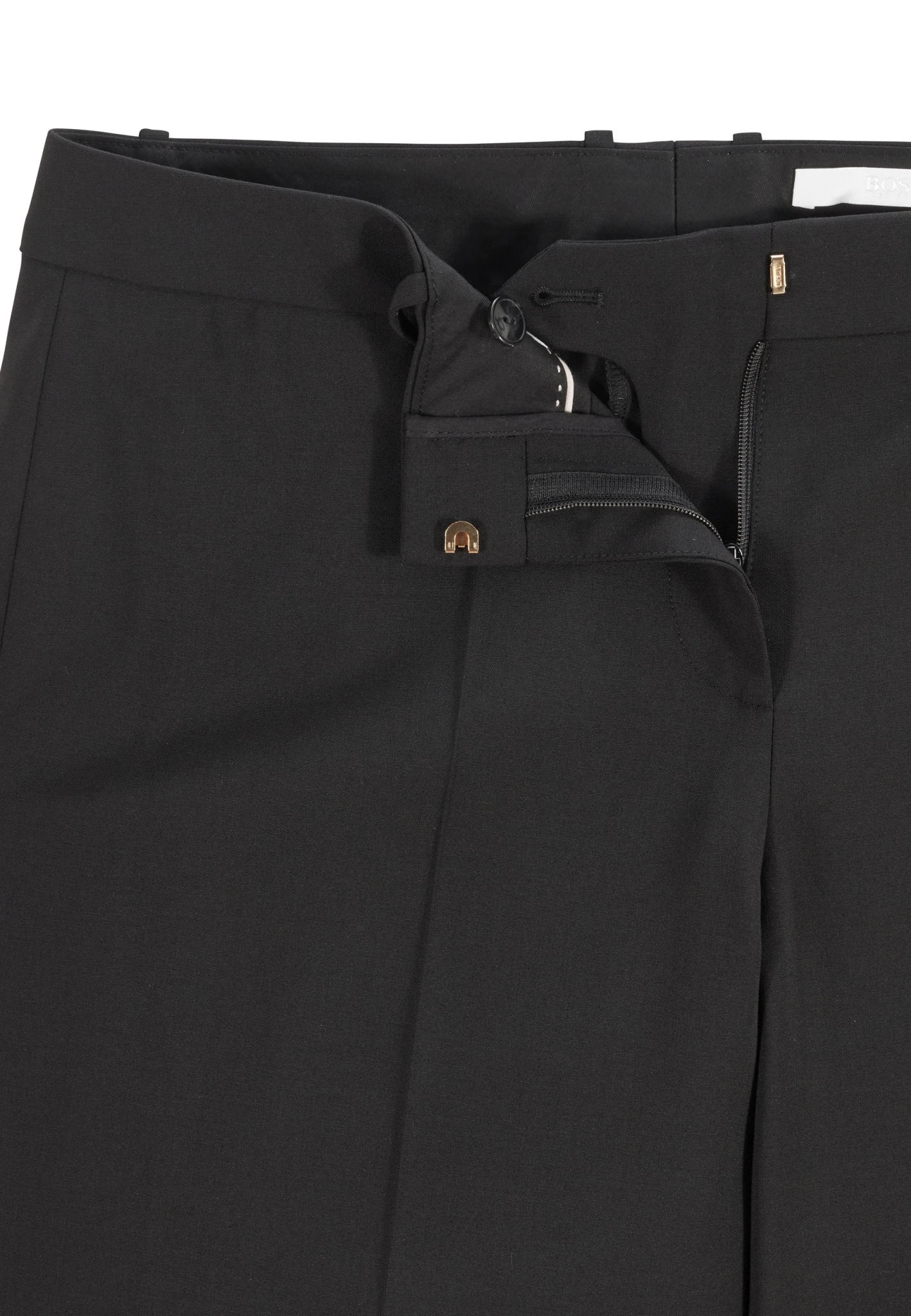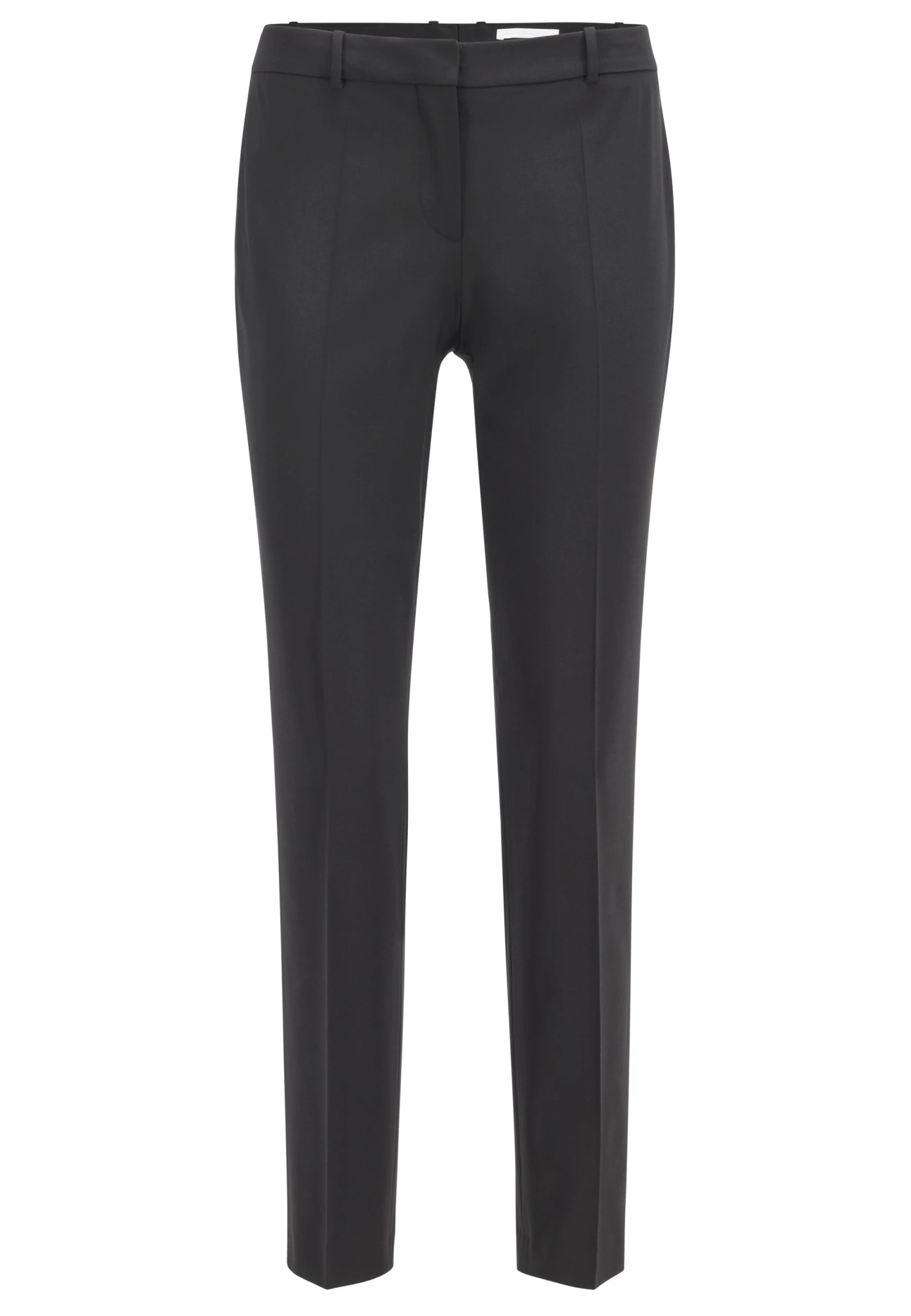 BOSS Hose aus italienischer Schurwolle mit Elasthan-Anteil. Die gerade geschnittene Damen-Hose mit schmalem Beinverlauf und verkürzter Länge bietet zahlreiche Kombinationsmöglichkeiten und ist hinten mit metallenen Logo-Details versehen. Kreieren Sie mit diesem Essential elegante oder legere Outfits für jeden Tag.