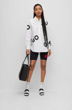 Hugo Oversized Bluse Mit Kontrast Logos 10706118