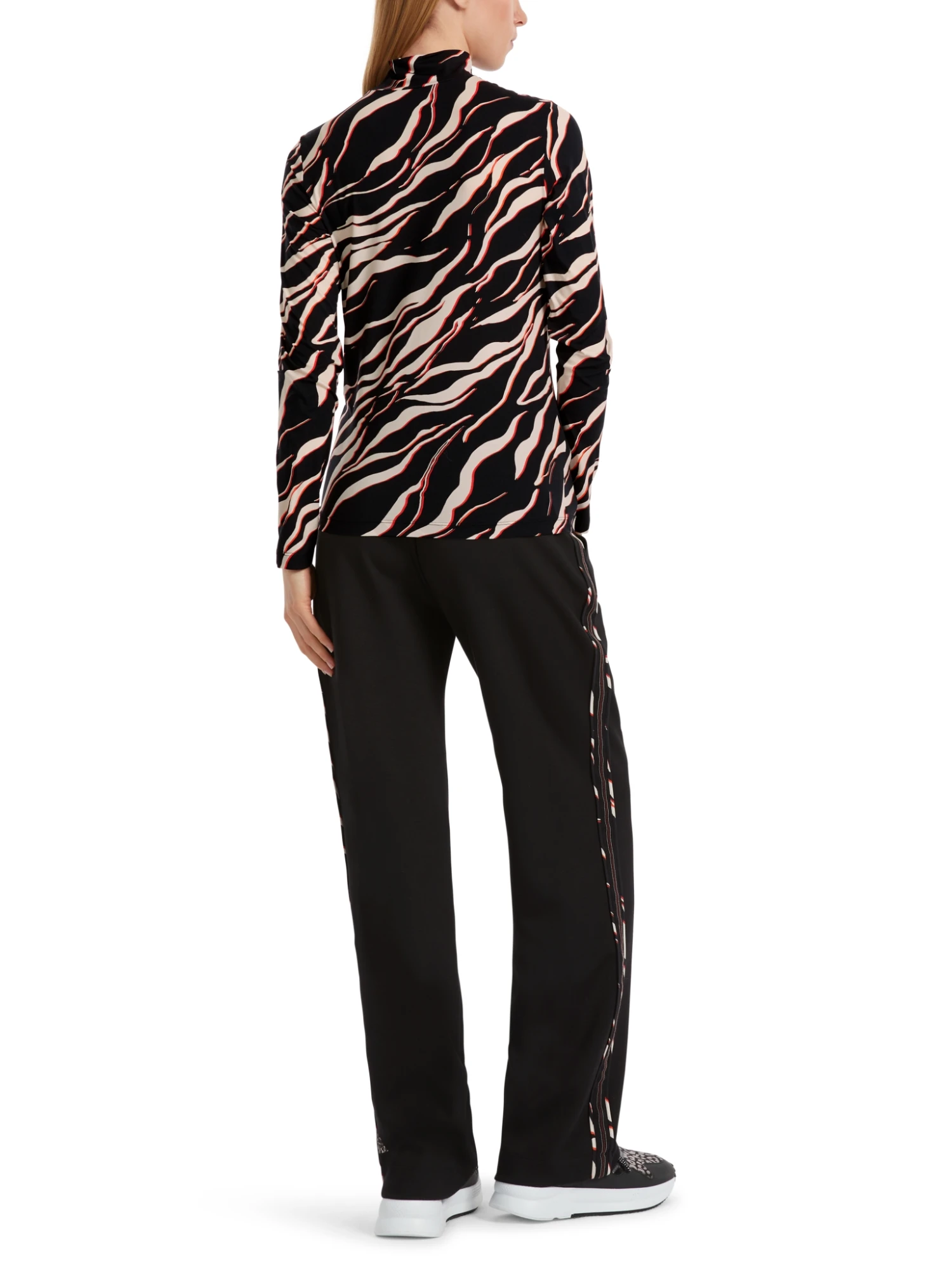 Das körpernah geschnittene Langarm-Shirt ist allover mit einem computertechnisch verfremdeten Leo-Print bedruckt. Stylishes Detail ist der hohe Stehkragen. Der Jersey ist flexibel und supersoft.