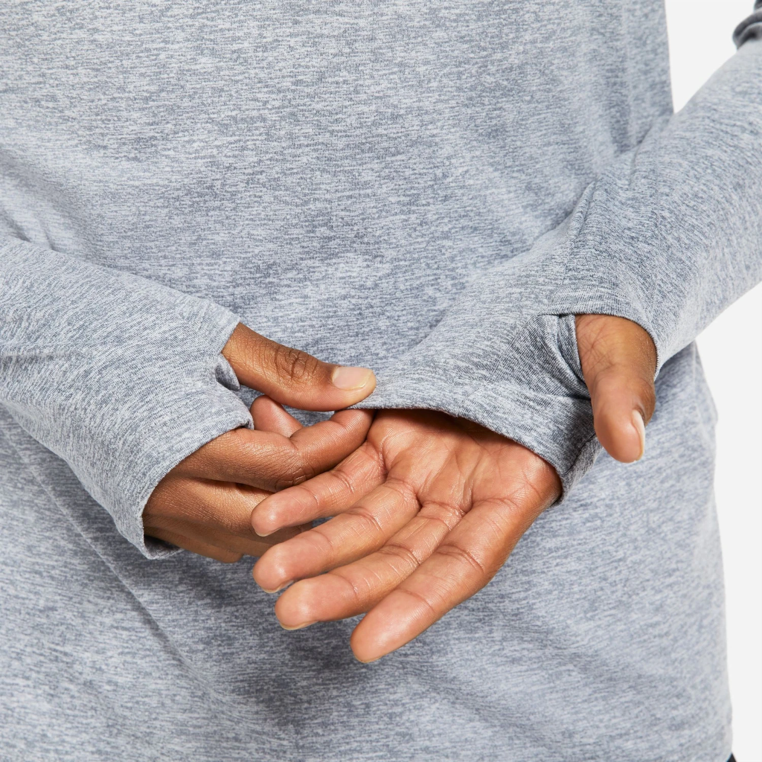 EIN VIELSEITIGES KLEIDUNGSSTÜCK FÜR DEN LAGENLOOK. Dein Lieblingslaufteil ist wieder da: mit weicher Feuchtigkeitsmanagementtechnologie, ideal für sich oder im Lagenlook. Das Nike Dri-FIT Oberteil bietet anpassbaren Schutz mit einem Halbreißverschluss-Design und Daumenöffnungen für noch mehr Wärme. Dieses Produkt besteht aus mindestens 75 % recyceltem Polyester. Weich und schweißableitend. Das recycelte Strickmaterial fühlt sich weich und geschmeidig auf der Haut an und ermöglicht absolute Bewegungsfreiheit. Die Nike Dri-FIT-Technologie leitet Schweiß von der Haut weg, wodurch er schnell verdunstet, und ermöglicht so trockenen Tragekomfort. Individuelle Luftzirkulation Das Design mit Halbreißverschluss sorgt für verstellbare Luftzirkulation und Schutz. Der Reißverschluss befindet sich an einem neu geformten Kragen mit weniger Nähten als frühere Versionen für ein absolut geschmeidiges Tragegefühl. Verbesserte Wärme Eine Daumenöffnung ermöglicht die Erweiterung des Schutzes der Ärmel für zusätzliche Wärme. Das geformte Design folgt im Gebrauch der Hand.