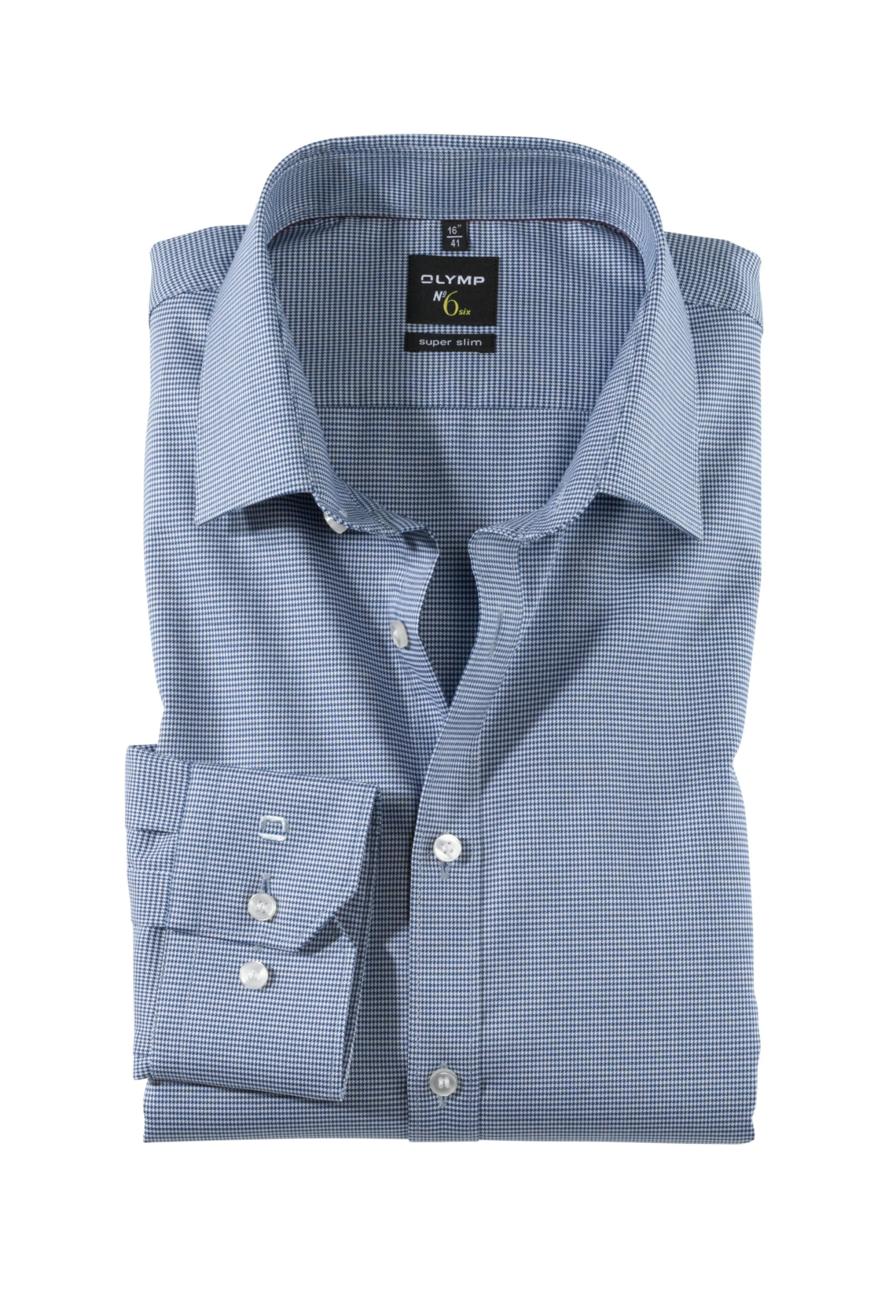 Olymp No. Six super slim ist die neue superschlanke Hemdengeneration von Olymp. Entworfen für junge, modebewusste Männer, die nicht nur immer schlanker, fitter und trainierter werden, sondern dieses neue Körpergefühl auch zeigen wollen. Ein moderner Urban-Kent-Kragen, abgerundete Kombimanschetten sowie eine schmale Knopfleiste unterstreichen den schlanken Look des Hemdes. Comfort Stretch sorgt für einen uneingeschränkt hohen Tragekomfort. Formbeständig und besonders bügelleicht.