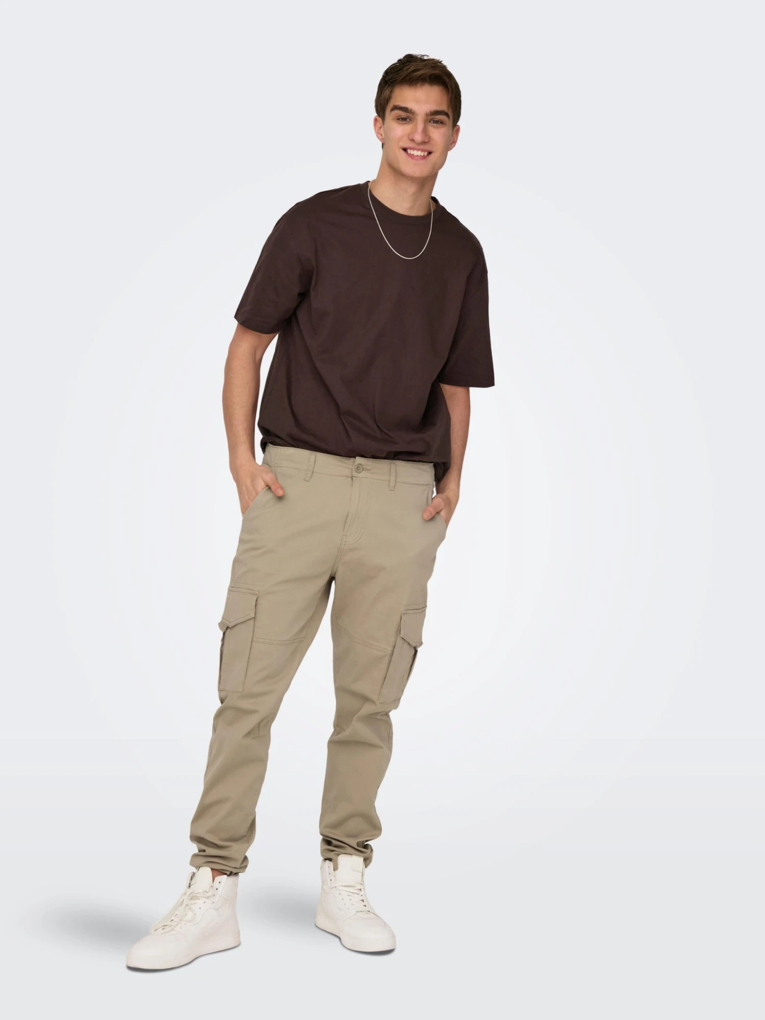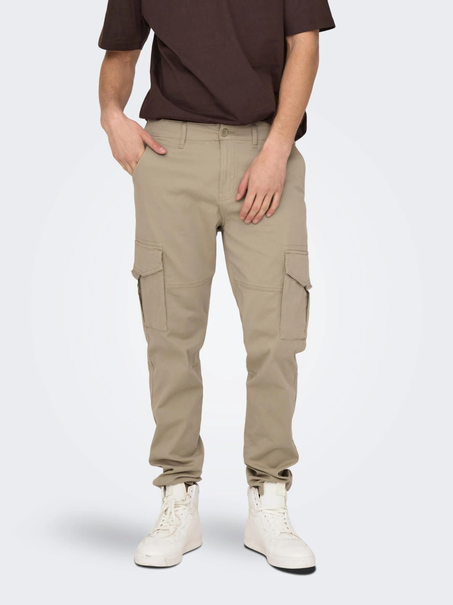 Cargo-Hose aus einem Baumwoll-Stretch-Mix. Hergestellt mit recycelter Baumwolle.